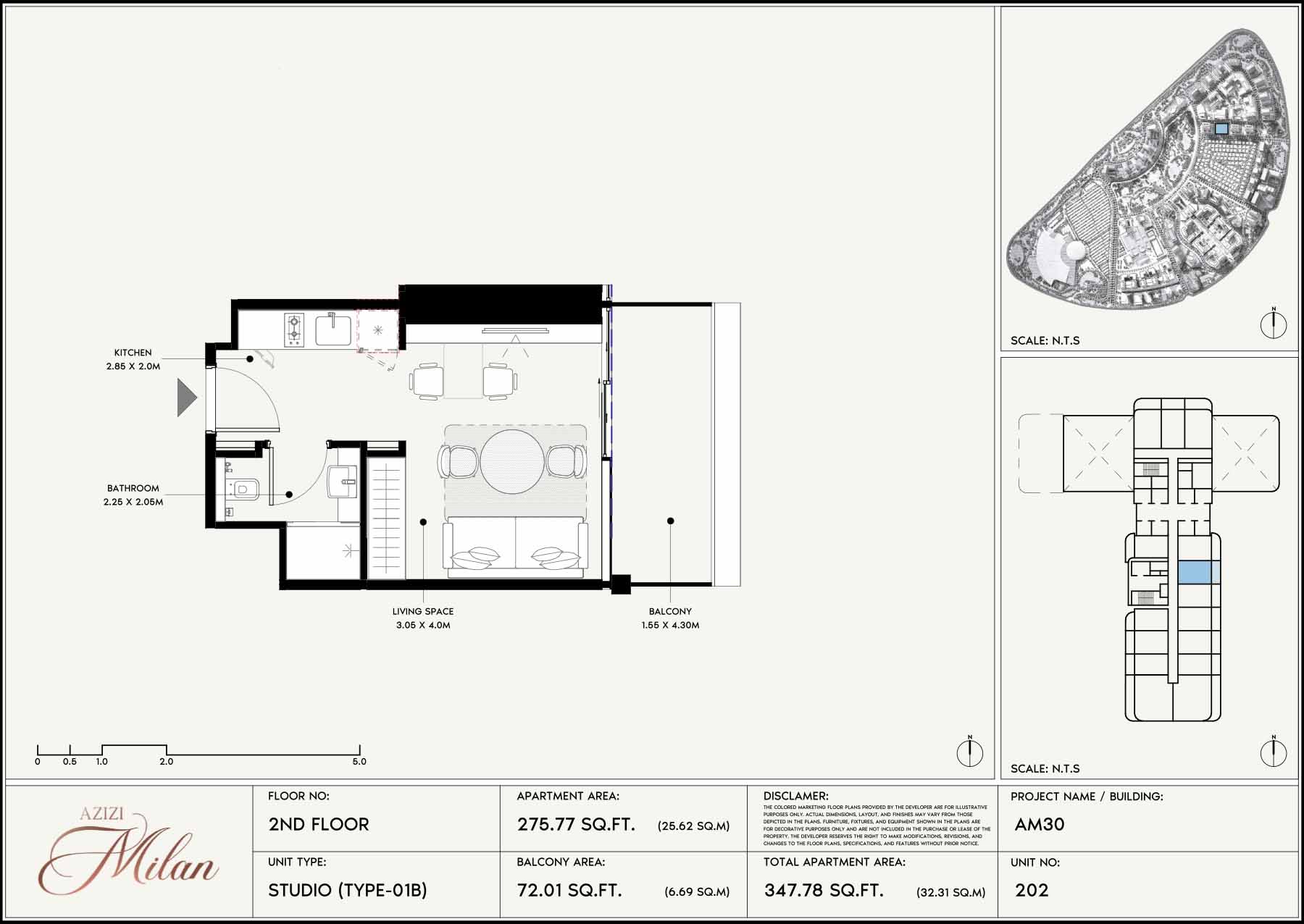 • Apartment Area: 275.77 sq. ft. (25.62 sq. m)